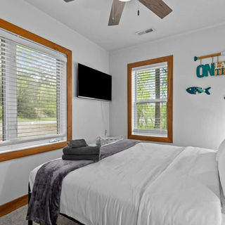 Spend your days fishing right off your private dock, paddling across the water with the included kayaks and paddleboards, or relaxing lakeside with family and friends. End the evening gathered around the firepit under the stars.